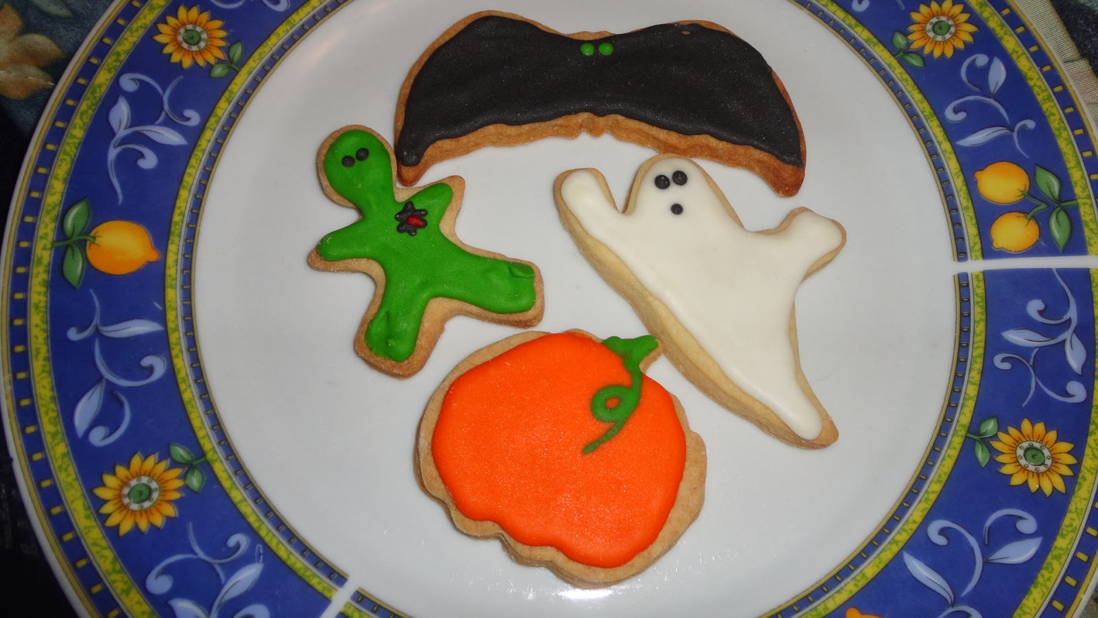 La mia amica ha preparato dei biscotti spaventosi per Halloween. Sono così carini che non li volevo mangiare ma non ho resistito!